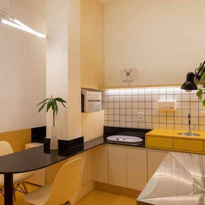 O projeto foi executado com um orçamento limitado e materiais econômicos, além de termos desenhado toda a parte do mobiliário e da iluminação. A circulação foi bem marcada pela cor, sendo esse um elemento fundamental do projeto.